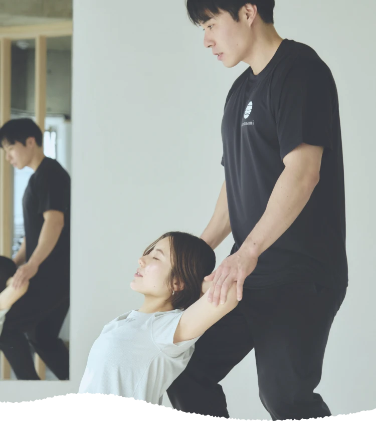 sazanamiには、医療や健康分野の資格を持つ「Wellness Coach」が在籍しています。トレーニングだけでなく、ライフスタイルや体調の変化にも寄り添い、あなたに合ったペースでのサポートを大切にしています。